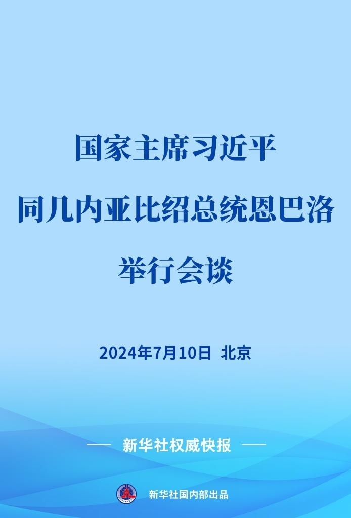 7月10日下午,國家主席習(xí)近平在北京人民大會堂同來華進(jìn)行國事訪問的幾內(nèi)亞比紹總統(tǒng)恩巴洛舉行會談。