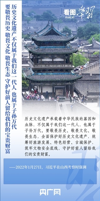 文化遺產(chǎn)是中華優(yōu)秀傳統(tǒng)文化的重要載體,承載著中華民族的基因和血脈。做好歷史文化遺產(chǎn)保護傳承工作,習近平總書記強調(diào),要統(tǒng)籌好旅游發(fā)展、特色經(jīng)營、古城保護,筑牢文物安全底線,守護好前人留給我們的寶貴財富。