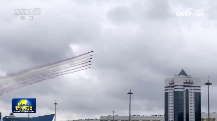 當地時間7月2日,習近平主席飛抵阿斯塔納,開啟中亞之行。哈薩克斯坦總統(tǒng)托卡耶夫在機場舉行盛大迎賓儀式。第二天上午,哈薩克斯坦首次在總統(tǒng)府歡迎儀式上安排戰(zhàn)機表演,以最高禮儀歡迎習主席到訪。