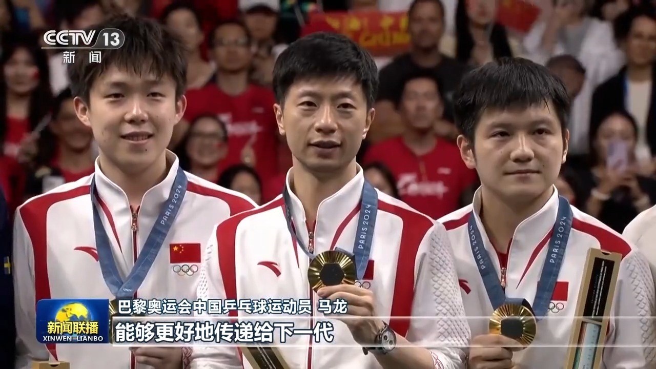 巴黎奧運(yùn)會(huì)中國乒乓球運(yùn)動(dòng)員 馬龍:首先能夠在新中國成立75周年之際,不光是我自己拿到第六枚奧運(yùn)金牌,同時(shí)能夠中國代表團(tuán)在海外也取得最好成績,我還是非常開心,也非常榮幸。作為我來說,希望能夠把自己的一些比賽經(jīng)驗(yàn)以及一些對于乒乓球項(xiàng)目的理解,能夠更好地傳遞給下一代,然后希望他們能夠繼續(xù)為我們中國體育事業(yè)獻(xiàn)出自己的一份力量。