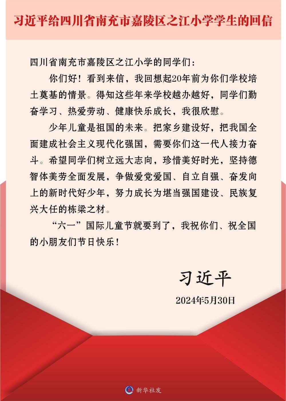 今年"六一"前夕,習(xí)近平總書記給之江小學(xué)的學(xué)生們回信:"得知這些年來(lái)學(xué)校越辦越好,同學(xué)們勤奮學(xué)習(xí)、熱愛(ài)勞動(dòng)、健康快樂(lè)成長(zhǎng),我很欣慰。"他勉勵(lì)同學(xué)們爭(zhēng)做愛(ài)黨愛(ài)國(guó)、自立自強(qiáng)、奮發(fā)向上的新時(shí)代好少年,努力成長(zhǎng)為堪當(dāng)強(qiáng)國(guó)建設(shè)、民族復(fù)興大任的棟梁之材。