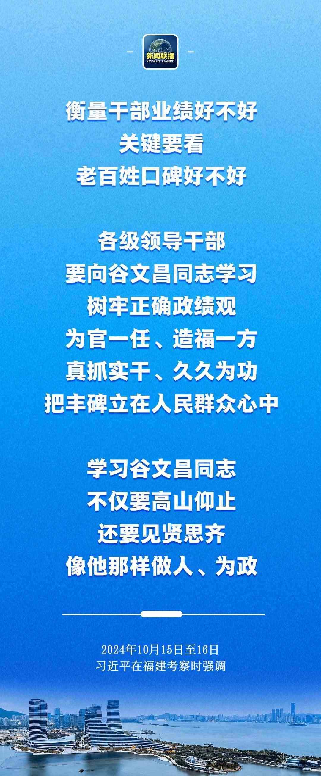 習(xí)近平在谷文昌紀(jì)念館考察時(shí)指出,衡量干部業(yè)績好不好,關(guān)鍵要看老百姓口碑好不好。各級(jí)領(lǐng)導(dǎo)干部要向谷文昌同志學(xué)習(xí),樹牢正確政績觀,為官一任、造福一方,真抓實(shí)干、久久為功,把豐碑立在人民群眾心中。學(xué)習(xí)谷文昌同志,不僅要高山仰止,還要見賢思齊,像他那樣做人、為政。