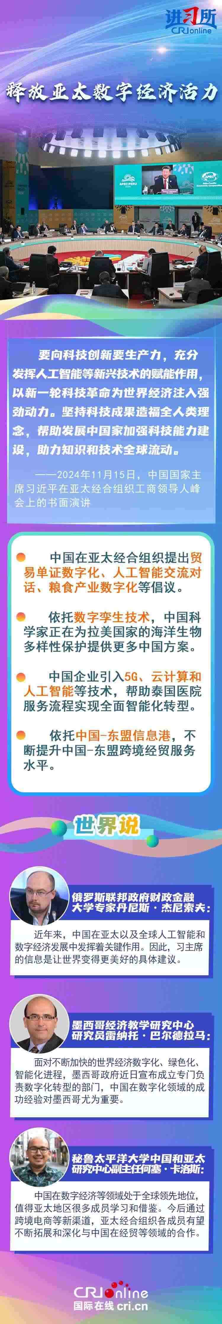 自1991年加入APEC以來,中國作為關(guān)鍵一員,持續(xù)為亞太地區(qū)成為世界經(jīng)濟(jì)的“火車頭”輸出關(guān)鍵穩(wěn)定力量,習(xí)近平主席表示,“落其實(shí)者思其樹,飲其流者懷其源”。中國的發(fā)展離不開亞太,也將進(jìn)一步造福亞太。多國人士表示,在中國的帶動和引領(lǐng)下,發(fā)展中國家有了更好的發(fā)展機(jī)會,看到了更加光明的未來。