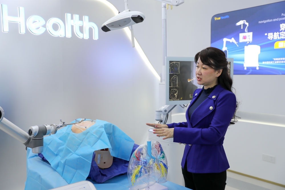 2024年11月24日,在橫琴澳門青年創(chuàng)業(yè)谷,澳門青年介紹“穿刺手術(shù)導(dǎo)航定位系統(tǒng)”。