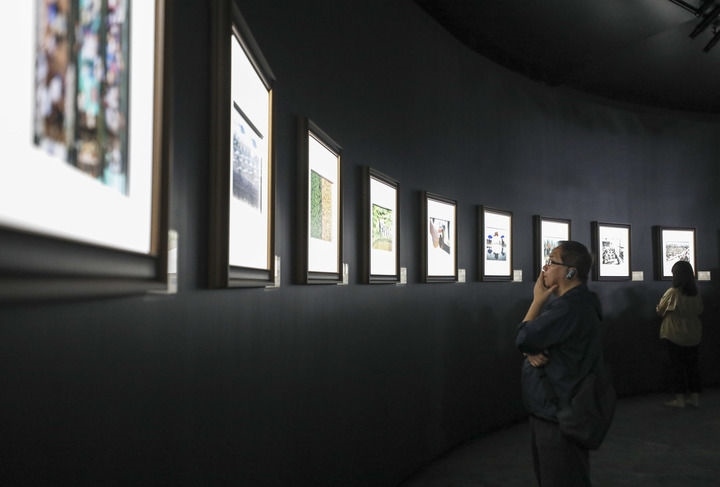 2024年9月26日,觀眾在北京參觀“國社之鏡·世紀(jì)光影”新華社新聞攝影展。新華社記者 杜瀟逸 攝