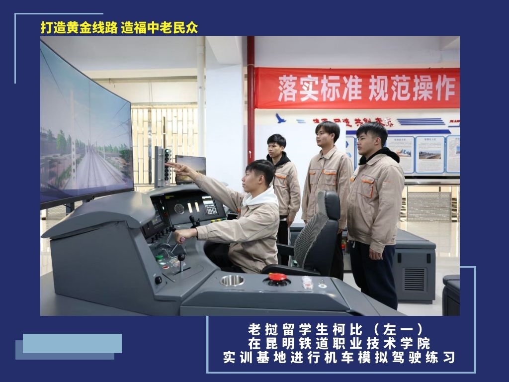 “在中老鐵路通車前,老撾境內(nèi)沒(méi)有標(biāo)準(zhǔn)軌鐵路,我對(duì)火車的認(rèn)知幾乎都來(lái)自電視和網(wǎng)絡(luò),課本中提到的各種火車零部件術(shù)語(yǔ)之前沒(méi)聽(tīng)過(guò),也沒(méi)見(jiàn)過(guò)?!崩蠐肓魧W(xué)生柯比說(shuō),跟老師寶貴的交流,不僅極大地豐富了自己的專業(yè)知識(shí),還點(diǎn)燃了興趣,希望畢業(yè)后能成為一名鐵路員工,服務(wù)中老鐵路。