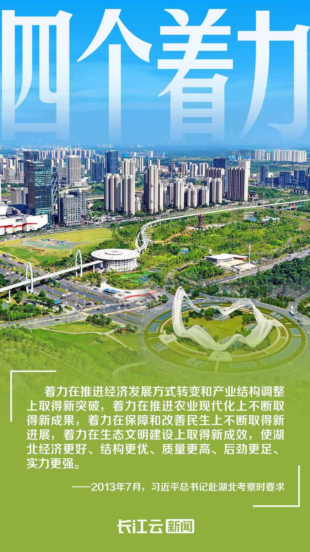 2013年7月,習近平總書記首次考察湖北時提出“四個著力”,要求“努力把湖北建設(shè)成為中部地區(qū)崛起重要戰(zhàn)略支點”“爭取在轉(zhuǎn)變經(jīng)濟發(fā)展方式上走在全國前列”。