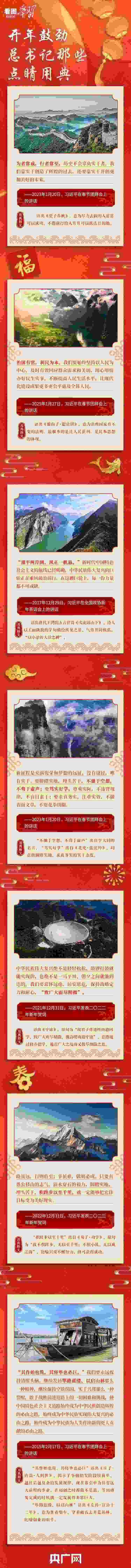 “犯其至難而圖其至遠(yuǎn)”“積跬步以至千里”“為者常成,行者常至,歷史不會辜負(fù)實干者”……每逢歲末年初,習(xí)近平總書記都會發(fā)表重要講話,為大家送祝福、鼓干勁。在這些重要講話中,總書記時常引經(jīng)據(jù)典、援古論今,為中華傳統(tǒng)詩文典故賦予鮮活的新時代內(nèi)涵。一年之計在于春,讓我們一起重溫總書記那些點睛用典,共同開啟新的篇章。