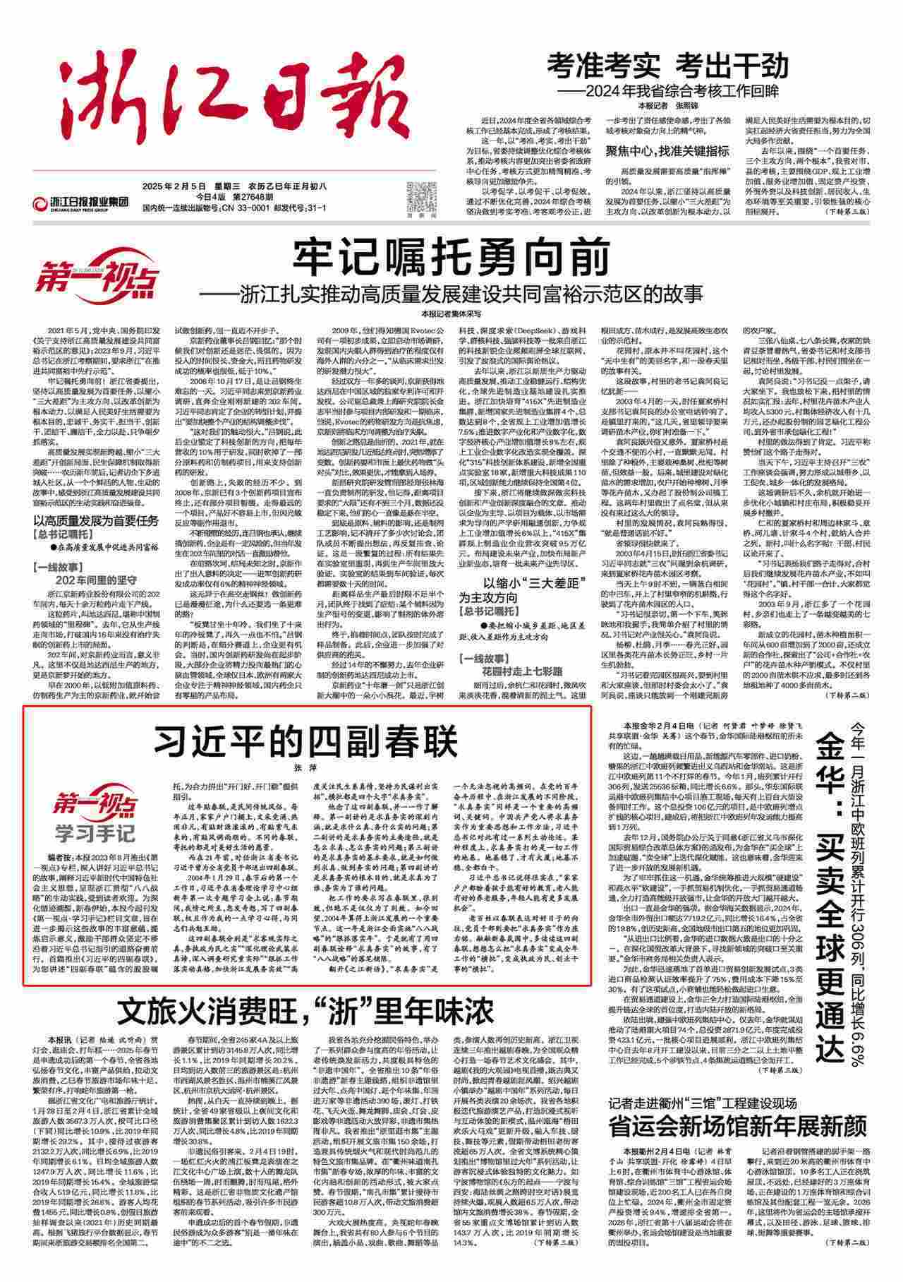 把工作的要求寫在春聯(lián)里,很別致,但絕不是僅僅為了別致。如今回望,2004年算得上浙江發(fā)展的一個(gè)重要節(jié)點(diǎn)。這一年是浙江全面實(shí)施“八八戰(zhàn)略”的“狠抓落實(shí)年”。于是就有了用四副春聯(lián)詮釋“求真務(wù)實(shí)”的故事,有了“八八戰(zhàn)略”的落筆鋪陳。