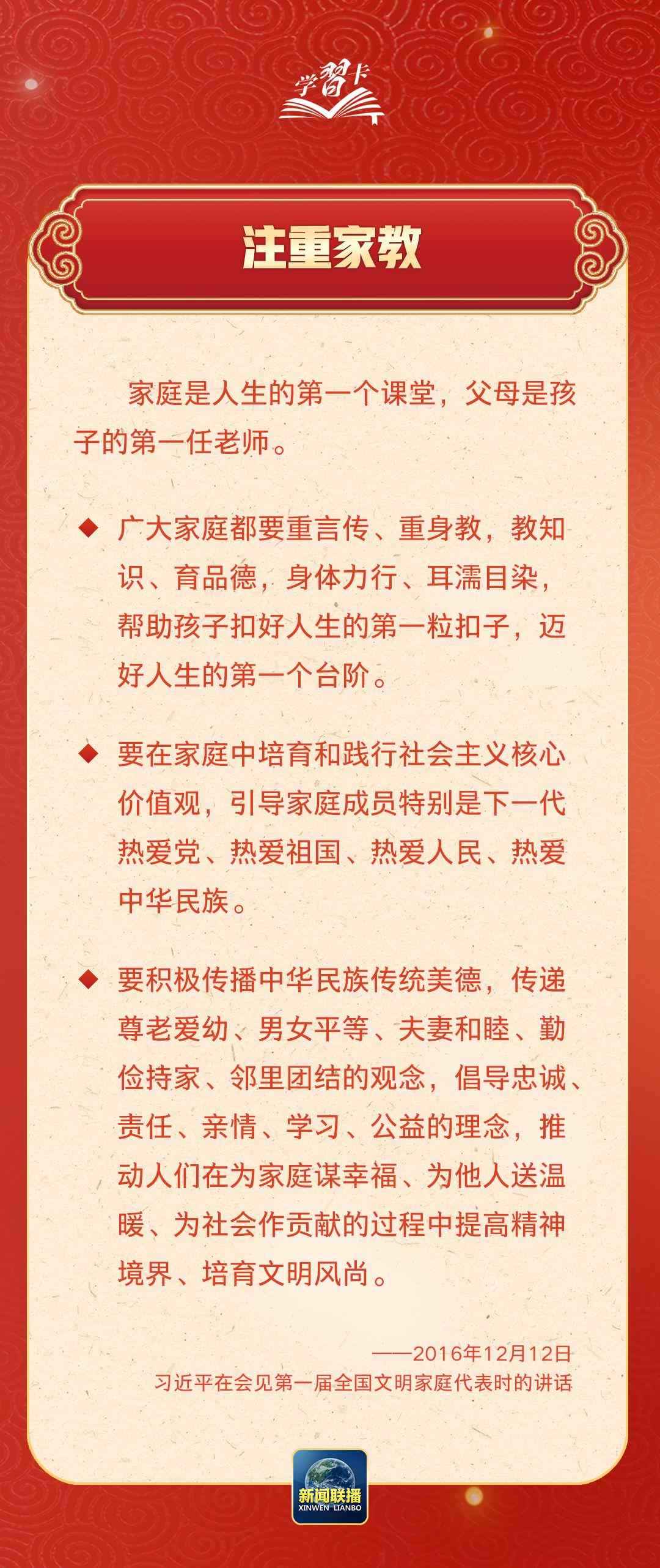 在習(xí)近平總書記心中,家國(guó)的分量很重。他多次強(qiáng)調(diào)要重視家庭建設(shè),提倡愛家愛國(guó)相統(tǒng)一,指出廣大家庭都要弘揚(yáng)優(yōu)良家風(fēng),以千千萬萬家庭的好家風(fēng)支撐起全社會(huì)的好風(fēng)氣。近日,《求是》雜志發(fā)表習(xí)近平總書記重要文章《注重家庭,注重家教,注重家風(fēng)》,一起學(xué)習(xí)↓