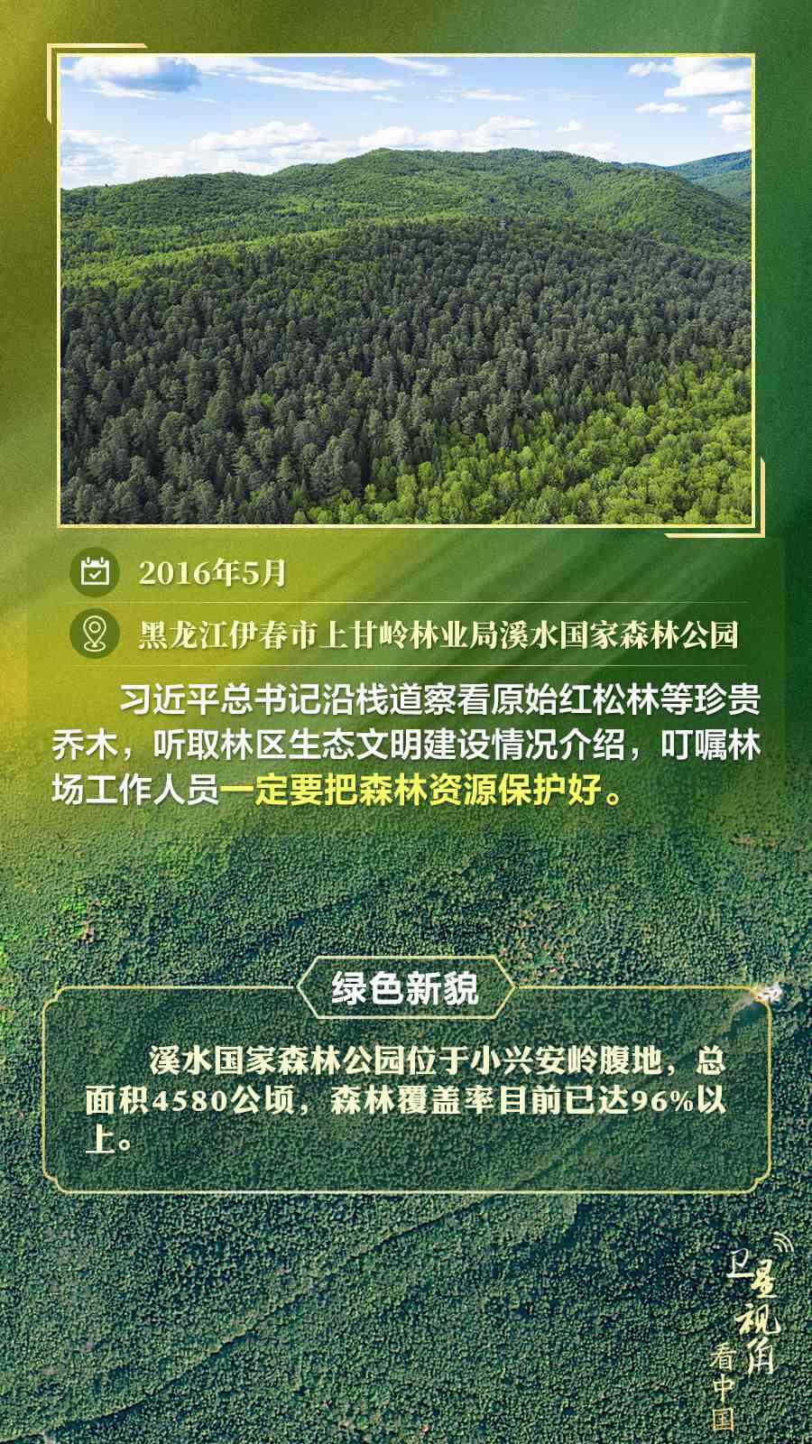 通過(guò)衛(wèi)星視角,一起俯瞰總書(shū)記去過(guò)的這些林區(qū),重溫總書(shū)記對(duì)造林護(hù)林的殷殷囑托,感受綠色新貌。