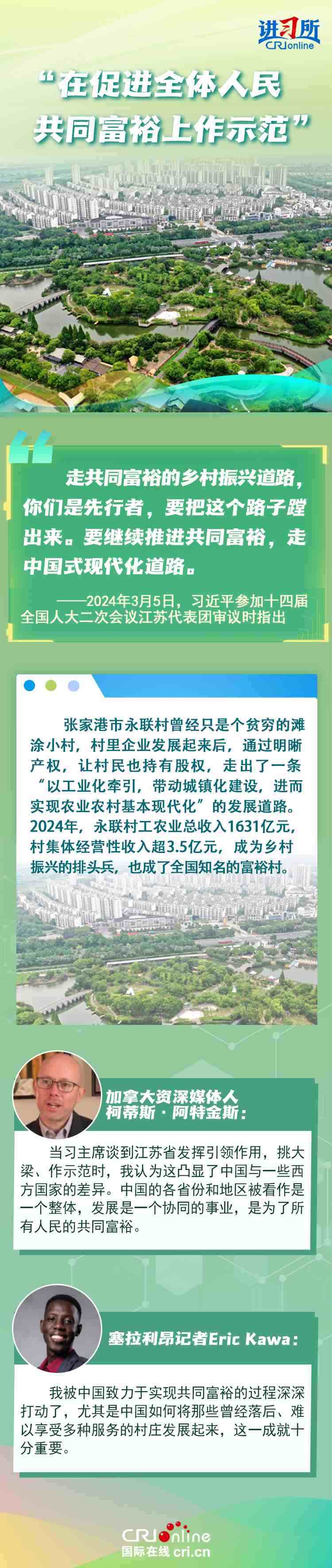 從紫金山實(shí)驗(yàn)室的6G突破到蘇州工業(yè)園區(qū)的開放升級(jí),從長(zhǎng)三角協(xié)同創(chuàng)新到永聯(lián)村的共富實(shí)踐,江蘇在中國式現(xiàn)代化新實(shí)踐上已成為世界觀察中國高質(zhì)量發(fā)展的重要窗口。國際人士認(rèn)為,中國因地制宜的創(chuàng)新發(fā)展之路有力推動(dòng)了國家現(xiàn)代化進(jìn)程與民生福祉提升。