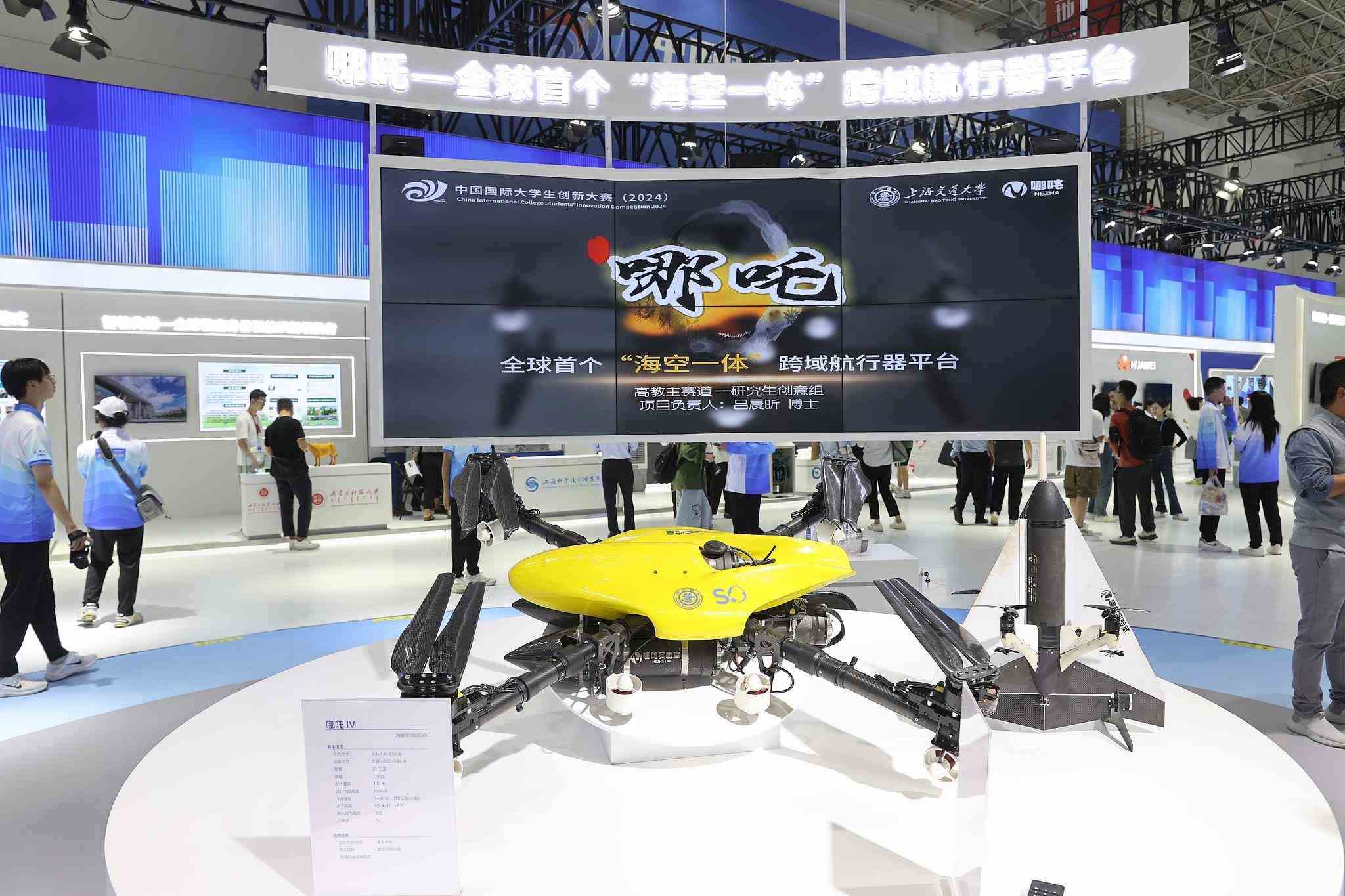 △2024年10月12日至15日,中國國際大學生創(chuàng)新大賽總決賽及同期活動在上海舉行。來自上海交通大學的“哪吒——全球首個‘海空一體’跨域航行器平臺”項目奪得冠軍。