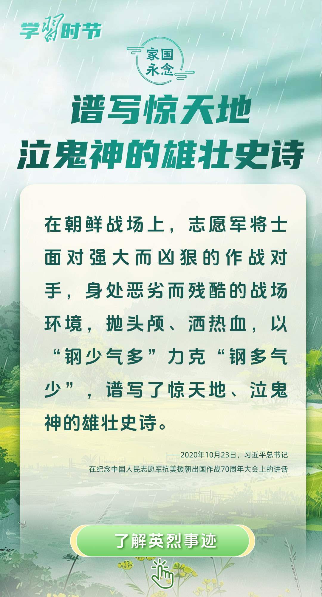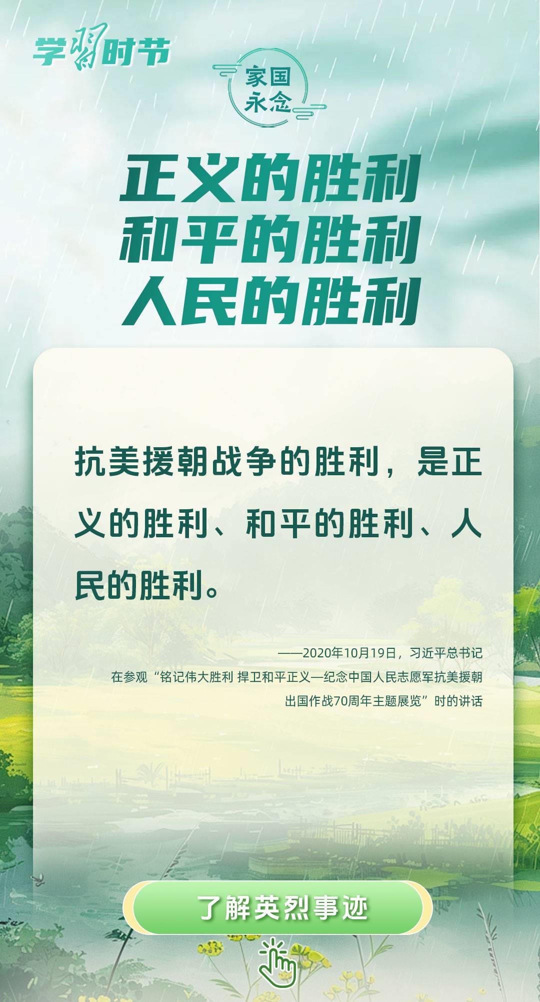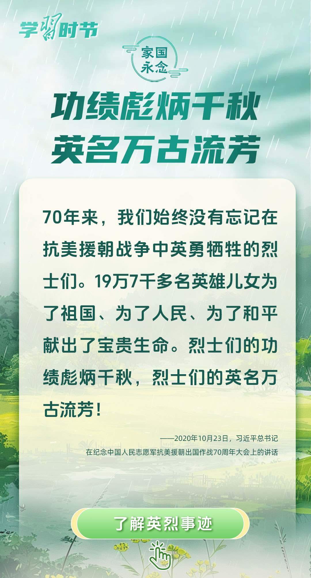 今年是中國(guó)人民抗日戰(zhàn)爭(zhēng)暨世界反法西斯戰(zhàn)爭(zhēng)勝利80周年、中國(guó)人民志愿軍抗美援朝出國(guó)作戰(zhàn)75周年。習(xí)近平總書記曾說:“對(duì)一切為國(guó)家、為民族、為和平付出寶貴生命的人們,不管時(shí)代怎樣變化,我們都要永遠(yuǎn)銘記他們的犧牲和奉獻(xiàn)?!苯裉煳覀兯鶕碛械囊磺?,無不凝結(jié)著英雄、英烈們的奉獻(xiàn)付出乃至巨大犧牲。
