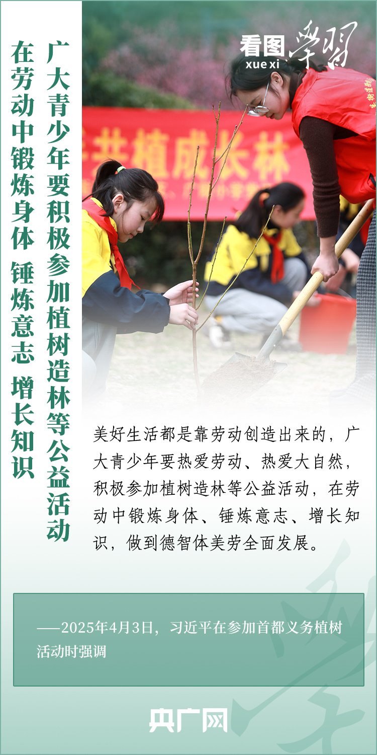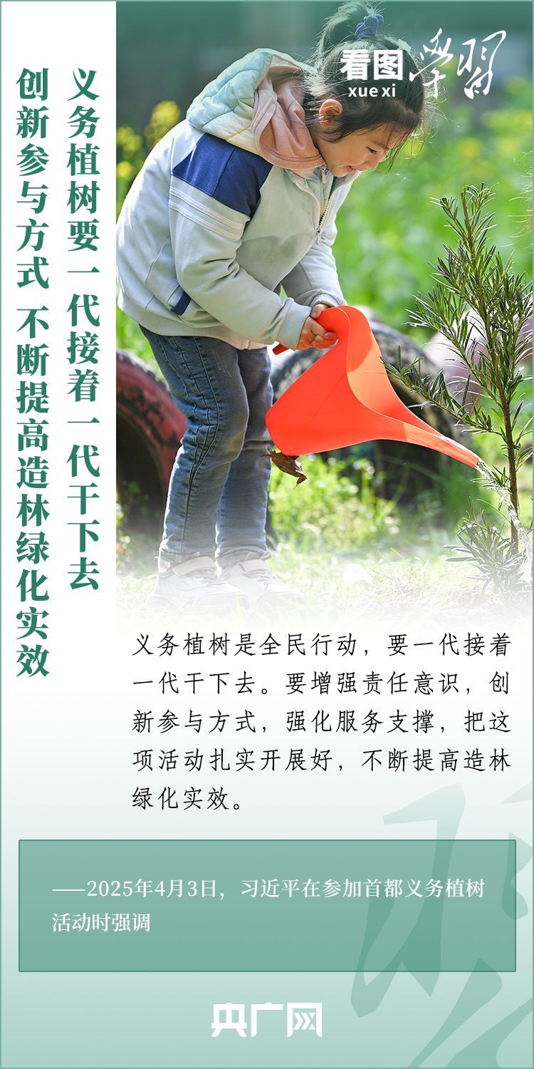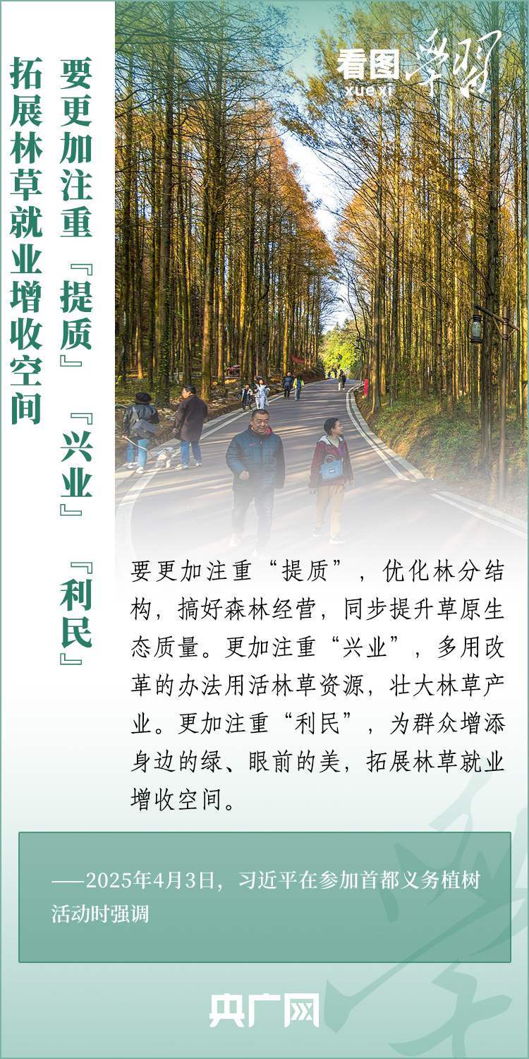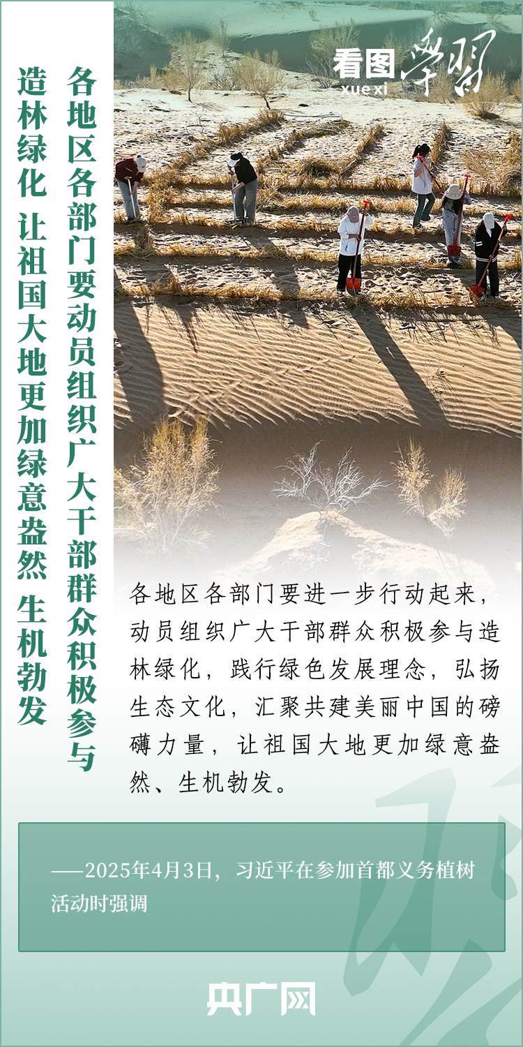 植樹造林是生態(tài)文明建設(shè)重要一環(huán)。4月3日,習(xí)近平總書記參加首都義務(wù)植樹活動(dòng)。在植樹現(xiàn)場,總書記高度肯定國土綠化工作取得來之不易的成績,強(qiáng)調(diào)綠化祖國必須堅(jiān)持“三綠”并舉、“四庫”聯(lián)動(dòng),要更加注重“提質(zhì)”“興業(yè)”“利民”,“匯聚共建美麗中國的磅礴力量,讓祖國大地更加綠意盎然、生機(jī)勃發(fā)”。一起來學(xué)習(xí)!