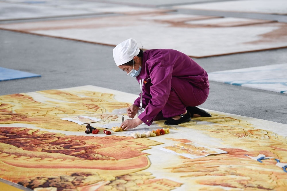 青海湖畔翱翔的水鳥(niǎo)、雪山下起舞的藏族女孩……在圣源地毯集團(tuán)有限公司車間內(nèi),手持電織槍的女工們,正按照設(shè)計(jì)圖織出精美立體的圖案。