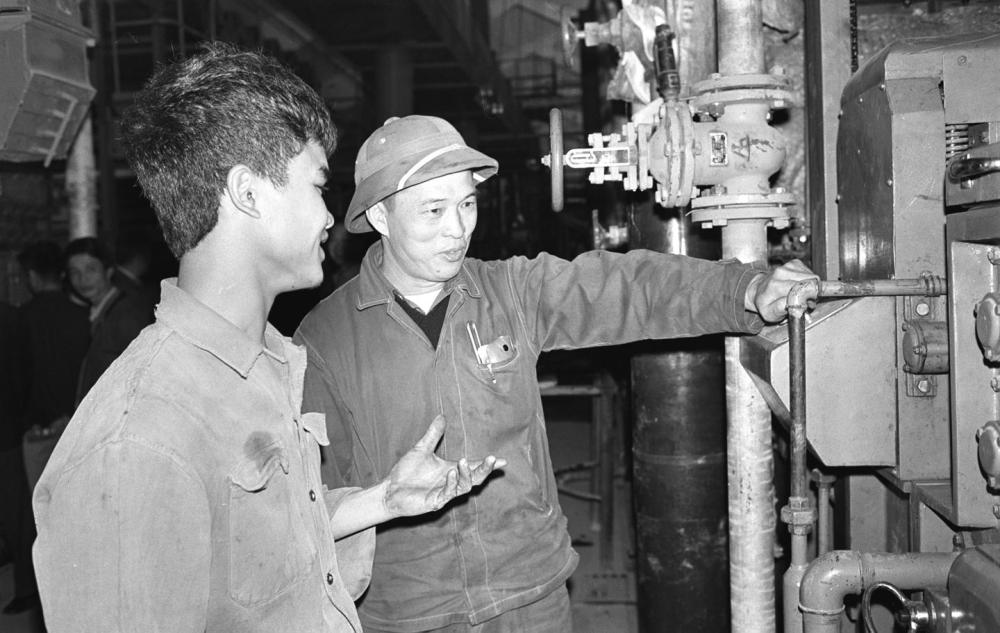 1970年,越南實(shí)習(xí)生在上海東方紅縫紉機(jī)廠學(xué)習(xí)裝配技術(shù)。