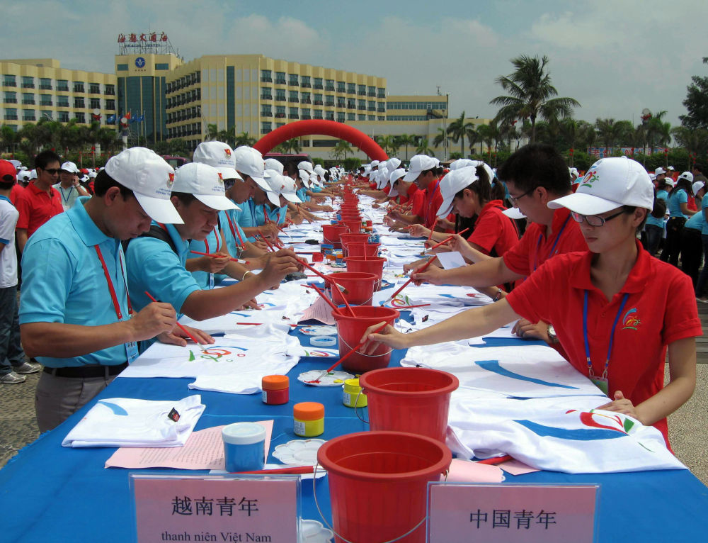 2010年8月27日,中越青年在廣西北海市海濱公園參加"用友誼共繪美好未來(lái)"中越千名青年大型彩繪活動(dòng)。