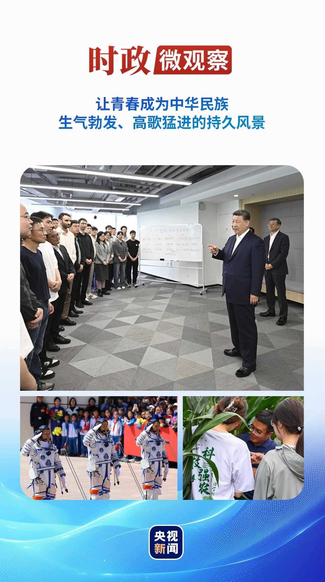 今年五四青年節(jié)前,習(xí)近平總書(shū)記再次來(lái)到年輕人中間。4月29日,在上海“模速空間”大模型創(chuàng)新生態(tài)社區(qū),總書(shū)記同青年創(chuàng)新人才親切交流,勉勵(lì)大家“把個(gè)人奮斗同國(guó)家前途命運(yùn)緊緊聯(lián)系在一起,跑好歷史的接力棒,在推進(jìn)中國(guó)式現(xiàn)代化的寬廣舞臺(tái)上綻放絢麗的青春光彩”。