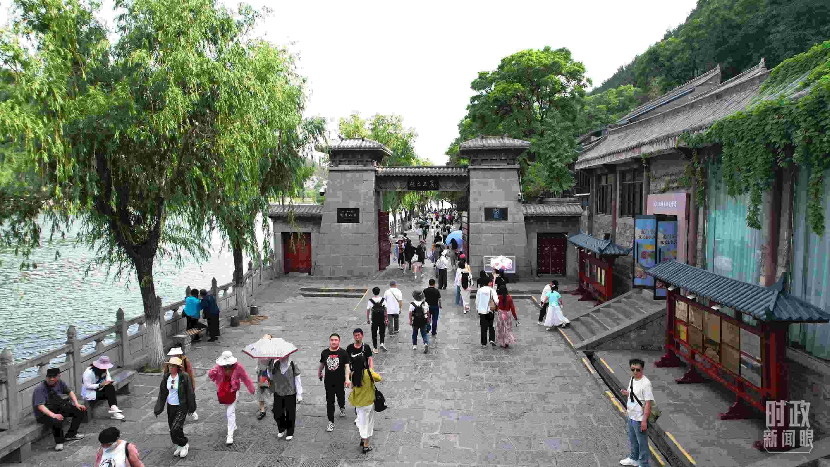 △龍門石窟景區(qū)絡繹不絕的游客。(總臺央視記者范凱拍攝)