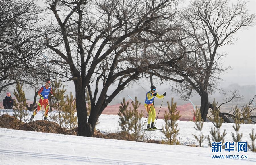 1月11日至1月15日,2018-2019年度全國(guó)青少年越野滑雪錦標(biāo)賽在內(nèi)蒙古烏蘭察布市涼城縣岱?;﹫?chǎng)舉行。這是選手在青年組男子30公里集體出發(fā)(自由技術(shù))比賽中(1月12日攝)。新華社記者彭源攝