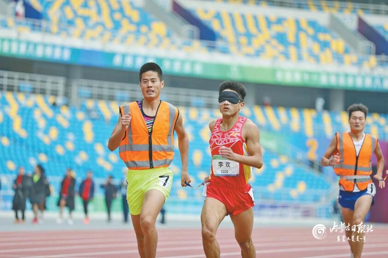 10月27日,內(nèi)蒙古盲人運(yùn)動(dòng)員李歡同他的領(lǐng)跑員楊愛瑞獲得男子800米t11級(jí)銅牌。