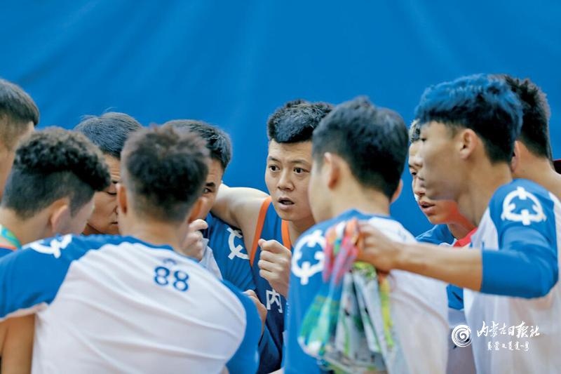 內(nèi)蒙古聾人籃球隊(duì)隊(duì)友們互相加油打氣。