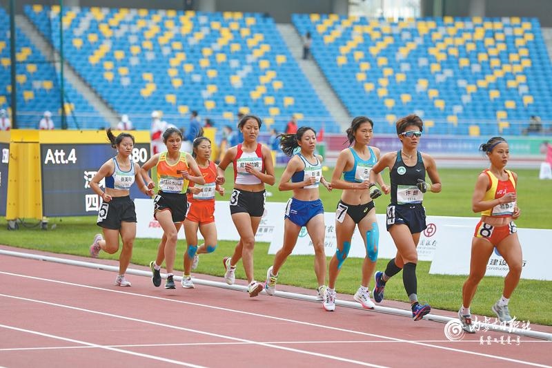 10月23日,內(nèi)蒙古運(yùn)動(dòng)員姜迎弟(左三)在女子萬(wàn)米聽障比賽中與各路高手角逐。