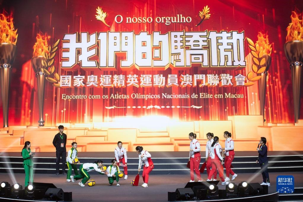 8日在澳門東亞運動會體育館開展“我們的驕傲——國家奧運精英運動員澳門聯(lián)歡會”活動。