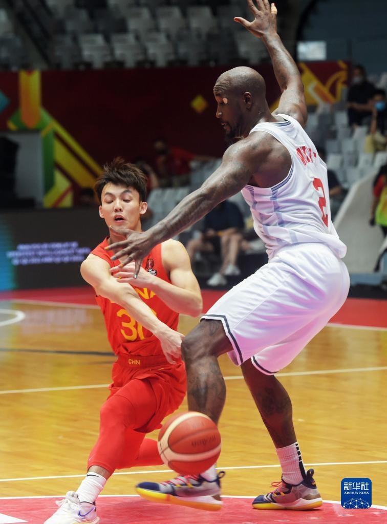 7月14日,中國隊(duì)球員胡明軒(左)在比賽中突破。新華社發(fā)(祖卡南攝)