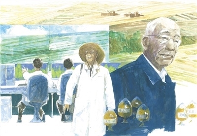 (六)如今,八畝薄田已發(fā)展為一百四十畝標(biāo)準(zhǔn)化玉米育種基地,通過實(shí)時(shí)監(jiān)控系統(tǒng),科技人員在鶴壁也可以指導(dǎo)海南育種基地種植。八十七歲的程相文依然常在玉米地里一待就是大半天。“一粒種子可以改變一個(gè)世界。希望再為農(nóng)民多培育出幾個(gè)好品種?!彼f。