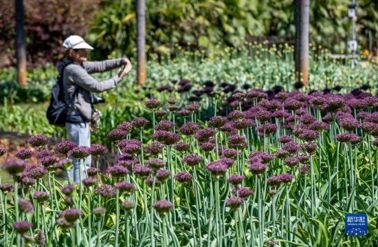 近日,昆明植物園中烏全球蔥園(昆明中心)內(nèi)的近十個品種、6000余株觀賞蔥屬植物逐漸迎來盛花期,吸引游客前來觀光。據(jù)了解,蔥屬植物具有重要的經(jīng)濟(jì)利用價值,許多種類被人類作為食用、藥用和觀賞植物進(jìn)行了長期的栽培利用。