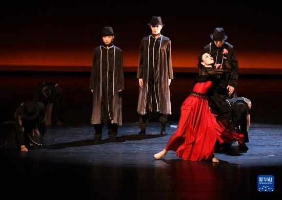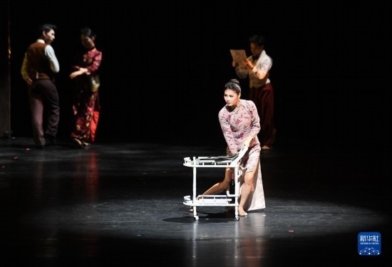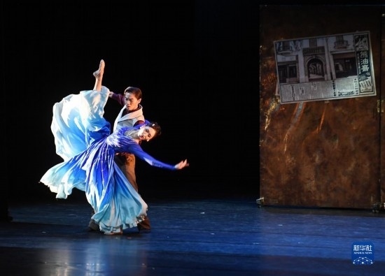 4月3日,演員在舞劇《藍色裙擺》中表演。