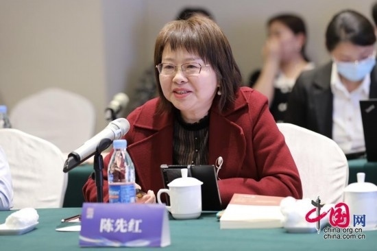 華中科技大學(xué)中國(guó)故事創(chuàng)意傳播研究院院長(zhǎng)陳先紅作主題演講。中國(guó)網(wǎng) 夢(mèng)恬 攝