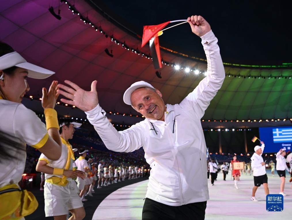 7月28日,中國(guó)大學(xué)生體育代表團(tuán)在開幕式上入場(chǎng)。