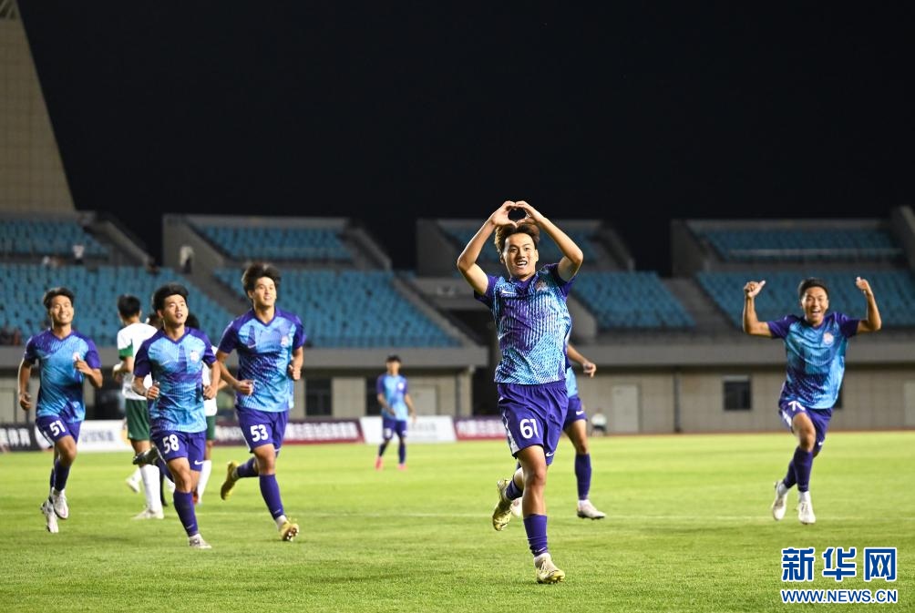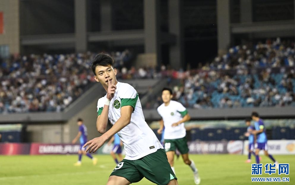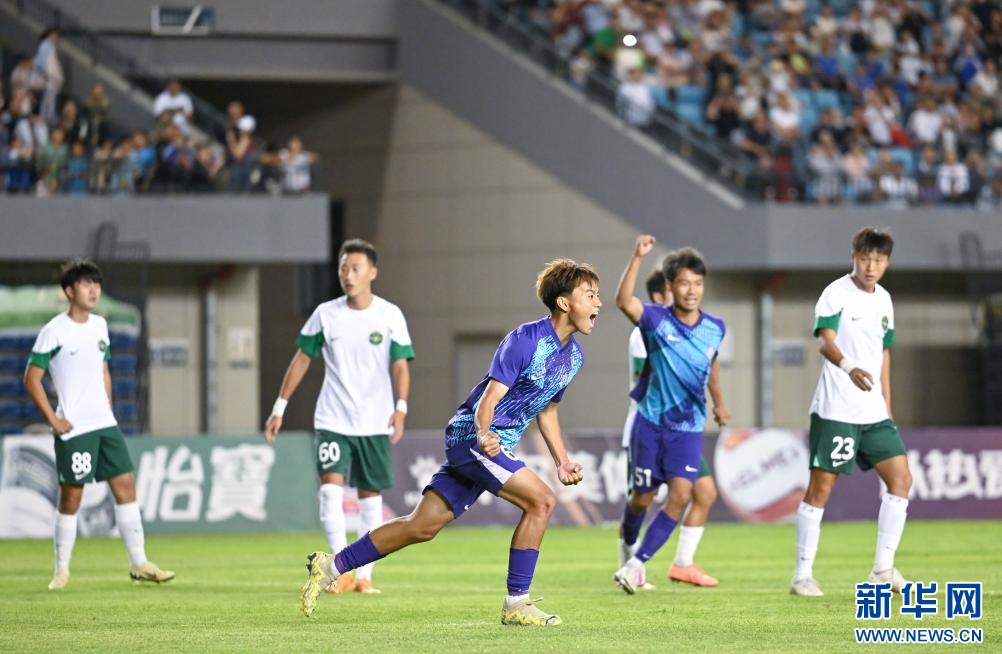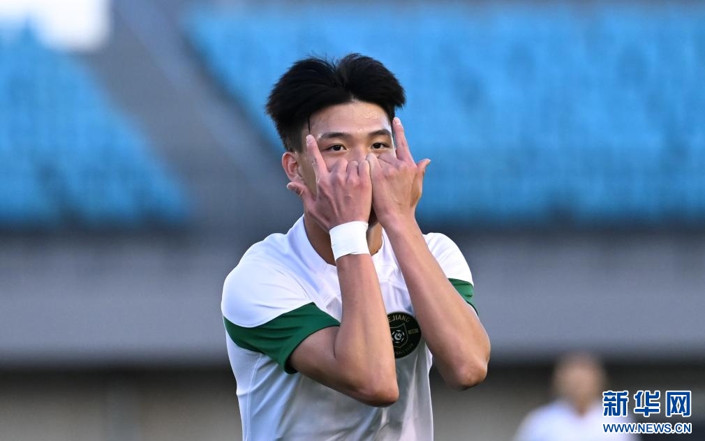 ??6月15日,浙江俱樂(lè)部U21隊(duì)球員王鈺棟在比賽中慶祝進(jìn)球。