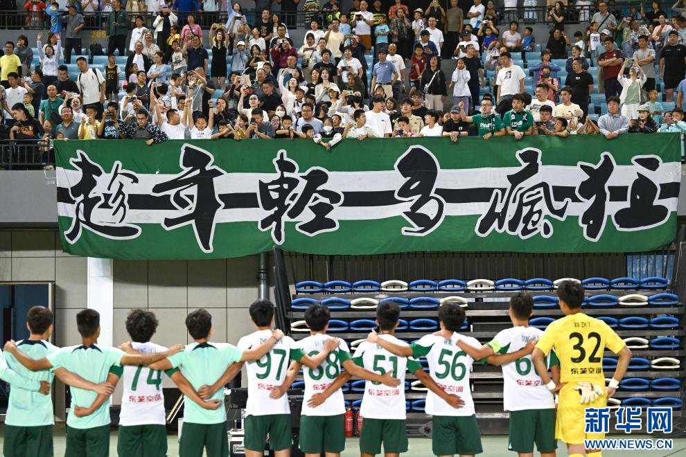 ??6月15日,浙江俱樂(lè)部U21隊(duì)球員在賽后向球迷致意。