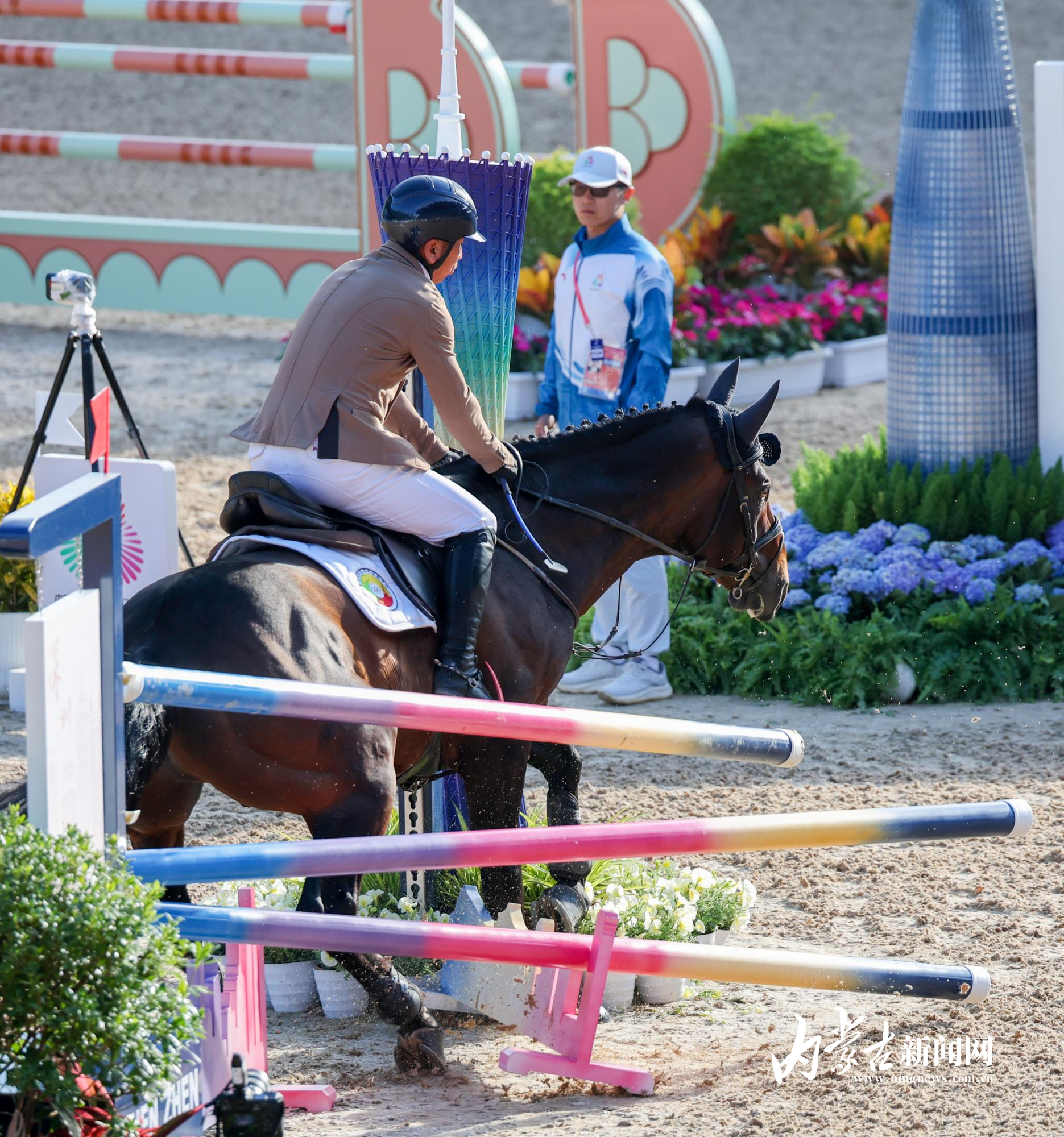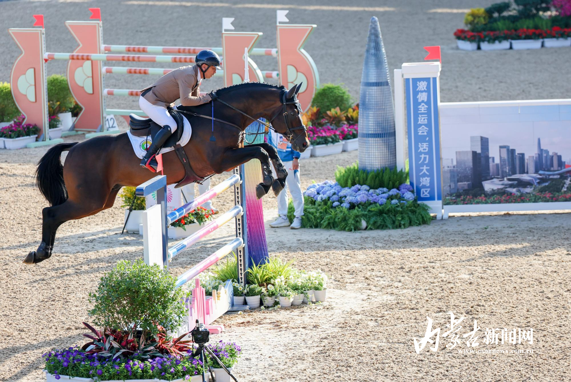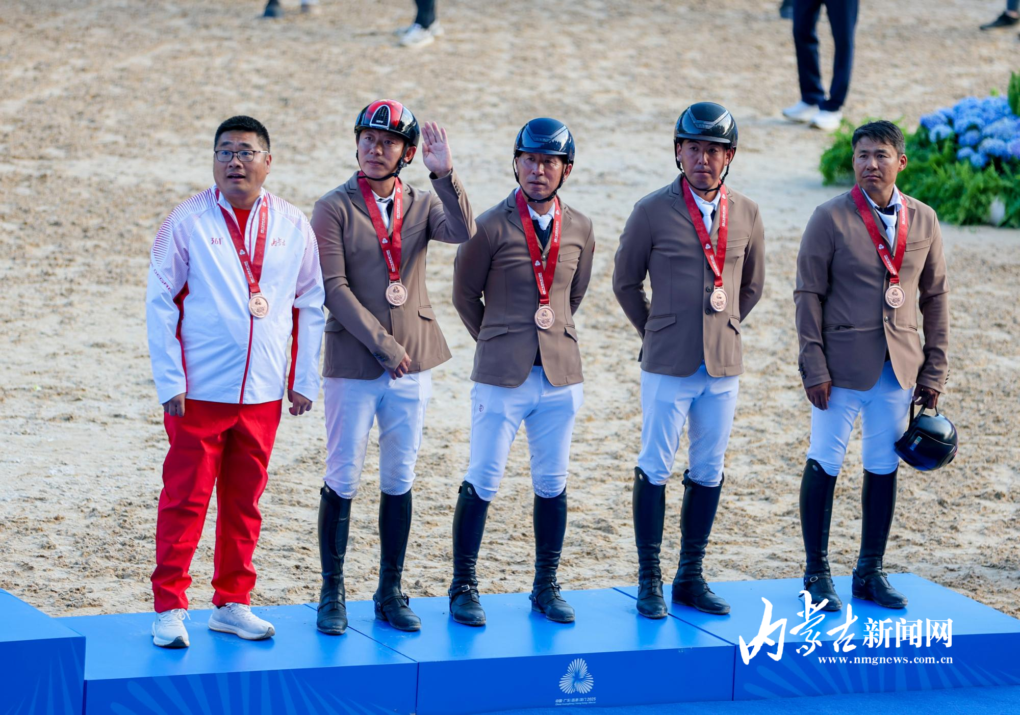 11月17日,第十五屆全國運動會馬術項目場地障礙團體賽在深圳市光明國際馬術中心進行,由達日瑪、劉同晏、張睿、韓豐組成的內(nèi)蒙古隊憑借兩輪穩(wěn)定發(fā)揮,以總罰分31分的成績斬獲銅牌。