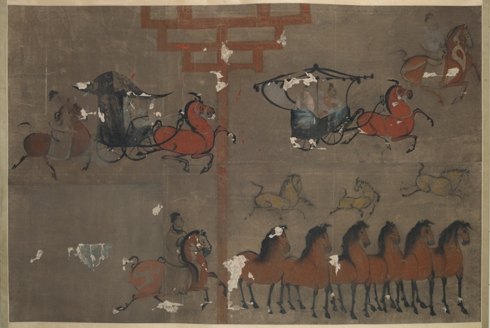 他,眼神堅定,峨冠博帶,身著華服位于畫面中央,周圍有疾馳的駿馬、彪悍的武士、精彩奇絕的樂舞百戲……這些畫面看上去遙遠而陌生。