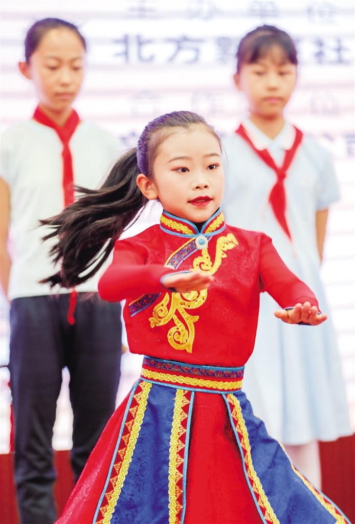 同樣來自騰飛路小學(xué)三年級5班的寧悅彤壓軸出場,在舞臺上激情四射的啦啦操表演獲得了很高的分?jǐn)?shù)。就在前一天,她和她的小伙伴們代表學(xué)校參加呼和浩特市第六屆中小學(xué)啦啦操健美操大賽,捧回了團(tuán)體第一的驕人成績。寧悅彤在后臺接受記者采訪時(shí)說:“第一次站上這樣大的舞臺表演,起初有點(diǎn)緊張,有幾個(gè)動作在表演過程中需要身體接觸地面,會很疼,但這是必須要承受的。我覺得這次經(jīng)歷也讓我更加勇敢,更加自信了?!?/p>