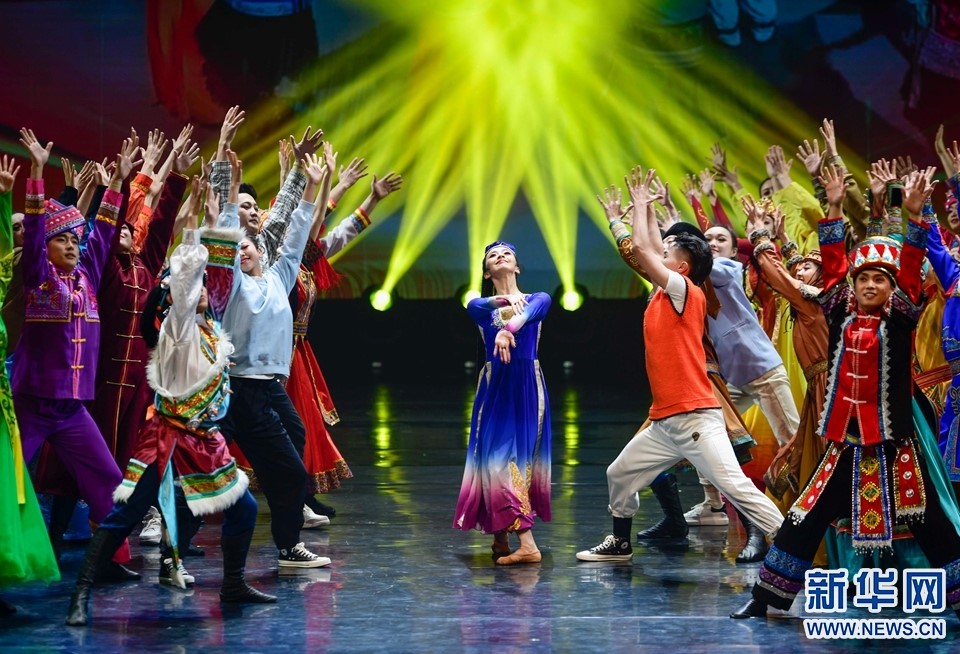 1月12日,演員在2022年內(nèi)蒙古新年舞蹈晚會(huì)中表演舞蹈《各族兒女行進(jìn)在陽(yáng)光里》。新華網(wǎng)發(fā)(王正攝)