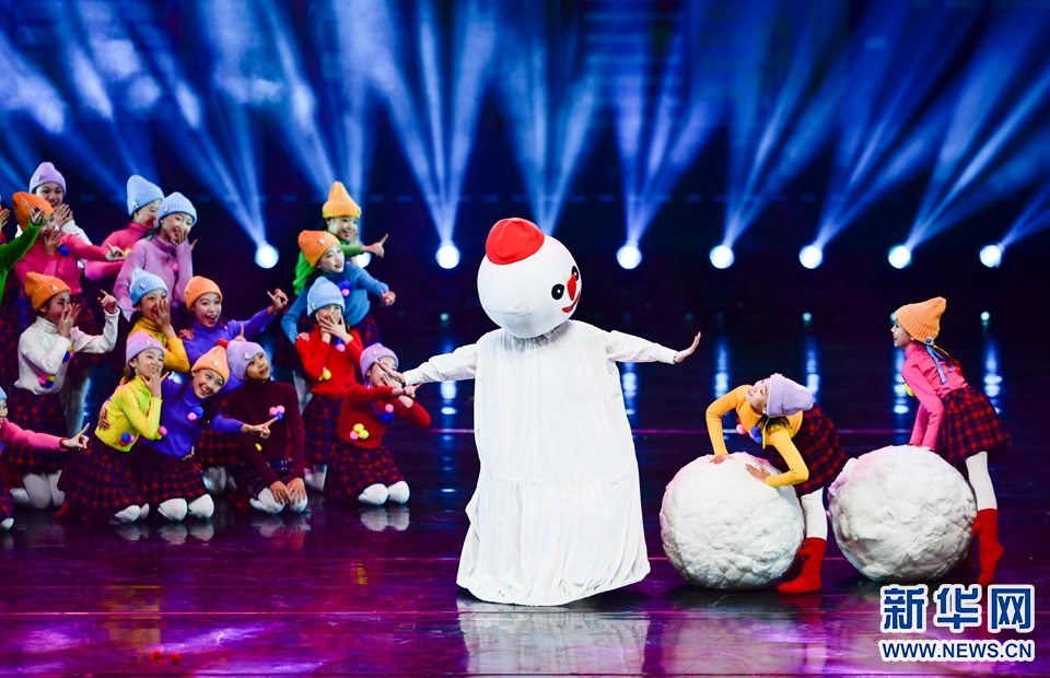 1月12日,演員在2022年內(nèi)蒙古新年舞蹈晚會(huì)中表演群舞《冬天暖陽(yáng)》。新華網(wǎng)發(fā)(王正攝)