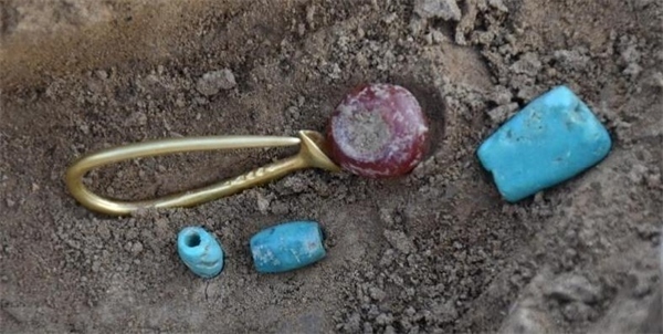 大坨頭文化聚落由內(nèi)、外兩重環(huán)壕圍合,外環(huán)壕直徑142至155米,寬8至12米,圍合面積約1.7萬平方米。內(nèi)環(huán)壕直徑70至72米,寬約18米,圍合面積約0.4萬平方米。在內(nèi)環(huán)壕內(nèi)、內(nèi)外環(huán)壕之間均發(fā)現(xiàn)有灰坑、窖穴、房址等遺跡。環(huán)壕聚落外東南方向發(fā)現(xiàn)27座豎穴土坑墓葬,布局規(guī)律,墓葬方向一致,部分墓葬還出土了靴形足彩陶尊等彩繪陶器、玉玦、綠松石項鏈、紅瑪瑙串珠、扣針形帶翼喇叭口金耳環(huán)等隨葬品,顯示了墓主較高的地位等級。穩(wěn)定同位素結(jié)果顯示,新宮遺址人群的食性以粟為主,肉食水平略高于二里頭遺址人群,并且不同等級墓葬的墓主人之間飲食結(jié)構(gòu)差異不大。該墓地的發(fā)現(xiàn),對于研究大坨頭文化的時空范圍、人群與族屬、喪葬習(xí)俗等提供了實物資料。