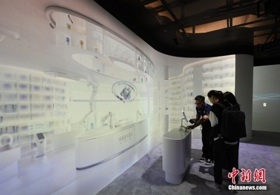 9月1日,主媒體中心展出的數(shù)字超市吸引參觀者駐足。當(dāng)日,杭州亞運(yùn)會主媒體中心舉行媒體開放日活動,現(xiàn)場亮相的科技與傳統(tǒng)文化項(xiàng)目引人體驗(yàn)。中新社記者 王剛 攝