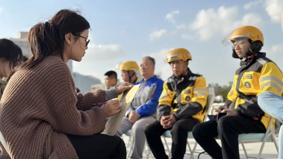 畫(huà)像小組的同學(xué)拿起手中畫(huà)筆,為團(tuán)結(jié)湖南北里社區(qū)老黨員、社區(qū)志愿者、騎手社工畫(huà)像。大家認(rèn)真描繪“模特”們和藹可親的形象,不時(shí)與“模特”聊天互動(dòng),聽(tīng)他們分享自己生活中的精彩故事。除此之外,部分同學(xué)圍繞垃圾分類(lèi)、廉政教育等主題為社區(qū)繪制黨建板報(bào)。通過(guò)繪制板報(bào),傳播正能量,為社區(qū)宣傳添一份力。