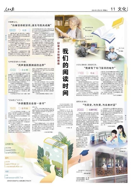 閱讀是什么?是一頁一卷,傳承千年文脈;是出行忙碌,隨身攜帶的星辰大海;是廣袤山鄉(xiāng),指引孩子們成長(zhǎng)的燈塔;也是靜謐時(shí)光,陪伴無數(shù)個(gè)日夜的詩和遠(yuǎn)方……第二十九個(gè)世界讀書日,我們關(guān)注多種多樣的閱讀時(shí)間,這些鮮活的場(chǎng)景展現(xiàn)著當(dāng)下人們閱讀生活的方方面面。讓我們從不同行業(yè)、不同年齡的讀者視角,感受文明的印記,見證時(shí)代進(jìn)步的力量。