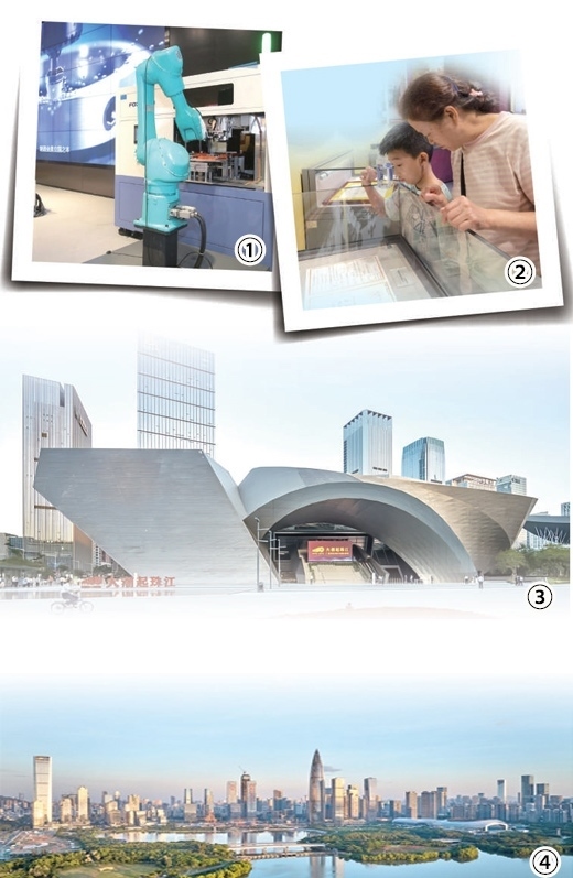 圖①:展覽中“無(wú)人工廠”演示場(chǎng)景,機(jī)器人在生產(chǎn)線作業(yè)。朱洪波攝 圖②:參觀者在觀看展品。本報(bào)記者 鄭海鷗攝 圖③:深圳改革開放展覽館外景。深圳改革開放展覽館供圖 圖④:深圳灣。史家民攝(影像中國(guó))