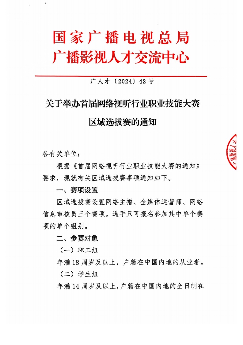 大賽設置網(wǎng)絡主播、全媒體運營師、網(wǎng)絡信息審核員三個賽項,分為區(qū)域選拔賽、全國決賽和頒獎三個階段,從事相關工作的企(事)業(yè)單位職工、自由職業(yè)者及相關專業(yè)全日制在籍學生均可報名參加。