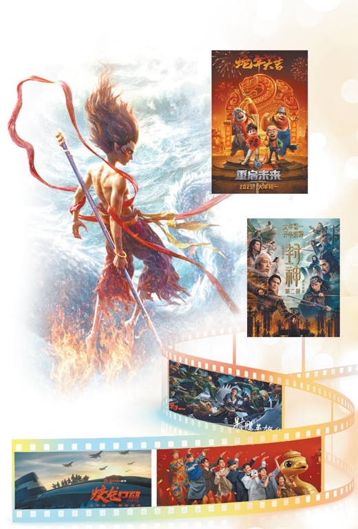 今年春節(jié)檔影片題材多元、類型豐富、市場關注度高?!斗馍竦诙浚簯?zhàn)火西岐》續(xù)寫前作暗線伏筆,展現(xiàn)人物的成長軌跡和戰(zhàn)爭場面;《哪吒之魔童鬧?!分v述哪吒鬧海故事,延續(xù)“超級喜劇、超燃視效”風格;《唐探1900》保留類型風格的同時,在內(nèi)容創(chuàng)新和制作規(guī)模上升級;《蛟龍行動》作為我國第一部核潛艇電影,在水下呈現(xiàn)廣闊戰(zhàn)場與復雜戰(zhàn)況;《熊出沒·重啟未來》是《熊出沒》科幻五部曲的最終章,用“極致的浪漫、大膽的想象”呈現(xiàn)一場冒險;《射雕英雄傳:俠之大者》改編自金庸經(jīng)典武俠小說,呈現(xiàn)了“俠之大者,為國為民”。
