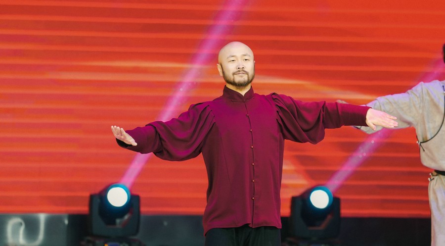 演出在舞步奔放、節(jié)奏明快的群舞《輝煌》中拉開帷幕,文藝志愿者們各展才藝,節(jié)目形式多樣,涵蓋了歌舞、小品、雜技、二人臺(tái)、呼麥等多種藝術(shù)形式。相聲《開心一刻》幽默詼諧,演員妙語連珠,引得觀眾笑聲不斷;小品《一路風(fēng)情走青城》聚焦日常點(diǎn)滴,用接地氣的故事展現(xiàn)呼市新風(fēng)貌,讓人倍感親切;歌曲《請(qǐng)到草原來》《歌在飛》《歌游內(nèi)蒙古》,文藝志愿者們用嘹亮歌聲傳遞對(duì)家鄉(xiāng)、對(duì)祖國(guó)的熱愛;二人臺(tái)對(duì)唱《掛起紅燈拜新年》、呼麥《馬群贊》飽含深情;藝體表演《武動(dòng)乾坤》、雜技《鍋碗瓢盆交響曲》創(chuàng)意十足,現(xiàn)場(chǎng)驚嘆聲此起彼伏;獨(dú)舞《雄鷹》以剛勁的肢體語言,詮釋鷹擊長(zhǎng)空磅礴氣勢(shì);《舞蹈美草》用輕盈的舞步展現(xiàn)原野的律動(dòng);最后,全體演員與觀眾齊聲合唱《我的祖國(guó)》,將演出推向最高潮。精彩的表演贏得了現(xiàn)場(chǎng)400多名觀眾的陣陣掌聲和歡呼聲,氣氛熱烈非凡。